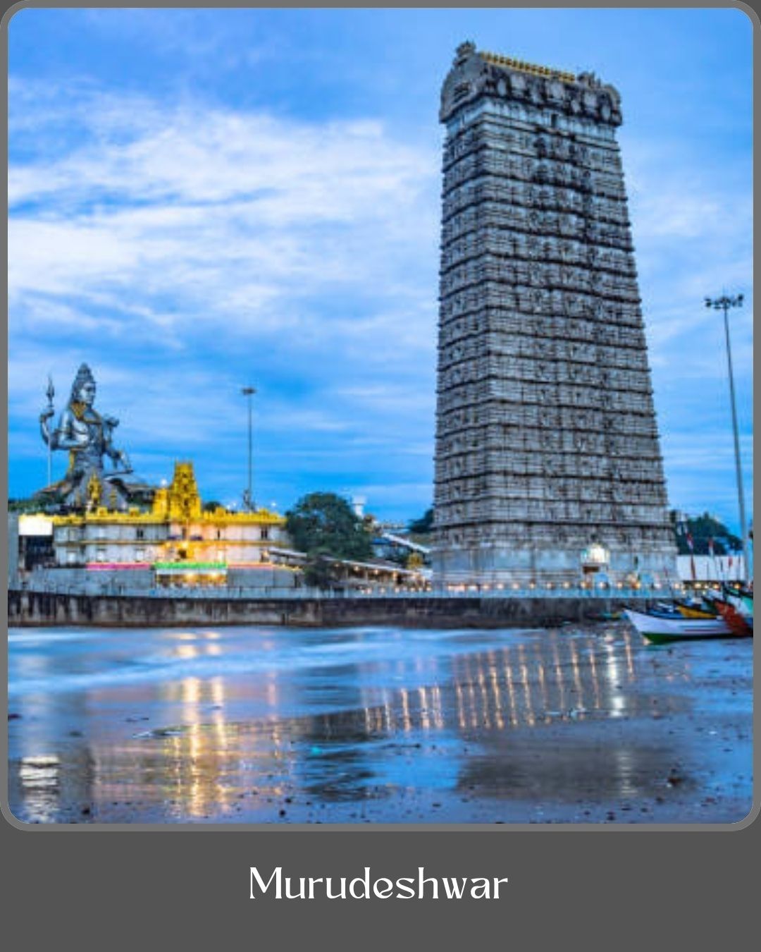 Murudeshwar, a serene coastal town in Karnataka, is renowned for its breathtaking beaches, rich heritage, and spiritual significance. The highlight of this destination is the towering 123-feet statue of Lord Shiva, one of the tallest in the world, which majestically overlooks the Arabian Sea. The Murudeshwar Temple, dedicated to Lord Shiva, is built on the Kanduka Hill surrounded by the sea on three sides, offering stunning panoramic views. With its golden gopuram, pristine beaches, adventurous water sports, and a perfect blend of divinity and natural beauty, Murudeshwar has become a must-visit destination for pilgrims, nature lovers, and tourists alike.