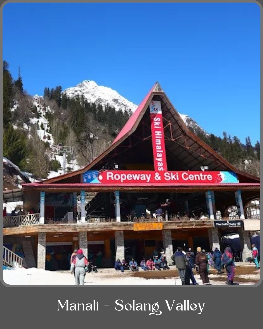 After an early morning breakfast, proceed for a full-day tour of the breathtaking Solang Valley. Witness the majestic mountains and stunning glaciers showcasing their full glory, creating a picture-perfect snowy paradise. Enjoy thrilling activities or simply bask in the serene beauty of nature. Have lunch amidst the magnificent views that make this valley a true delight for nature lovers. The mesmerizing landscapes and crisp mountain air offer an unforgettable experience. In the evening, return to your hotel in Manali, enjoy a delicious dinner, and relax with an overnight stay surrounded by the peaceful charm of the hills.