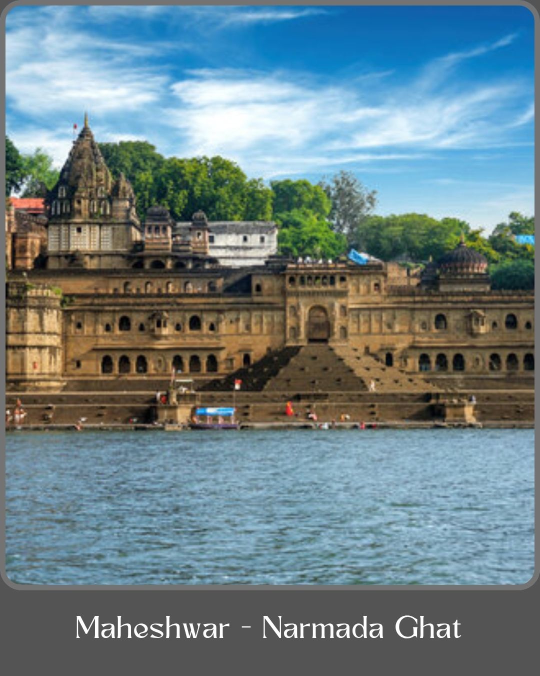 Maheshwar, situated on the banks of the serene Narmada River in Madhya Pradesh, is a town steeped in history, spirituality, and culture. Renowned for its majestic Maheshwar Fort, visitors can explore its intricately carved temples, royal cenotaphs, and the beautiful riverside ghats that come alive during evening aartis. The Ahilya Bai Holkar’s legacy is visible throughout the town, especially in the stunning Ahilya Fort and the 18th-century temples she commissioned. Maheshwar is also famous for its traditional handwoven Maheshwari sarees, crafted by skilled local artisans, Nature lovers can enjoy the tranquil Narmada River views and the peaceful ghats, while history buffs will delight in exploring the architectural marvels and ancient structures. With its perfect blend of spirituality, culture, and scenic beauty.